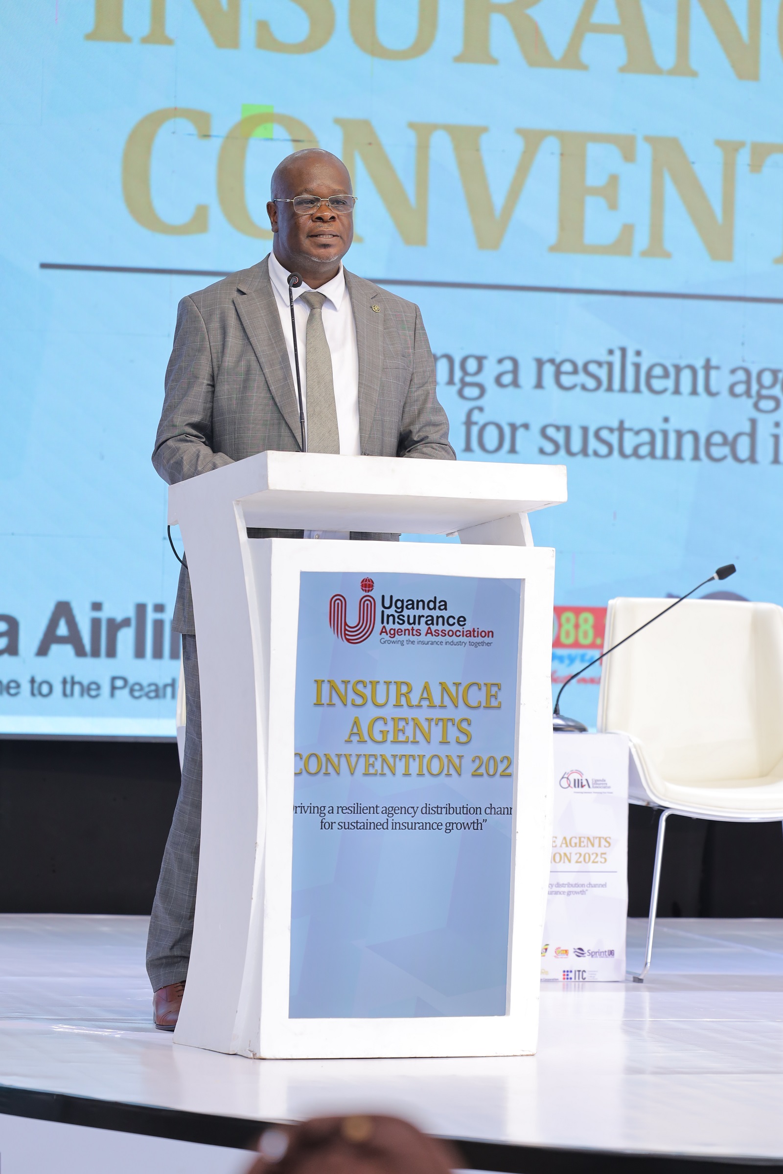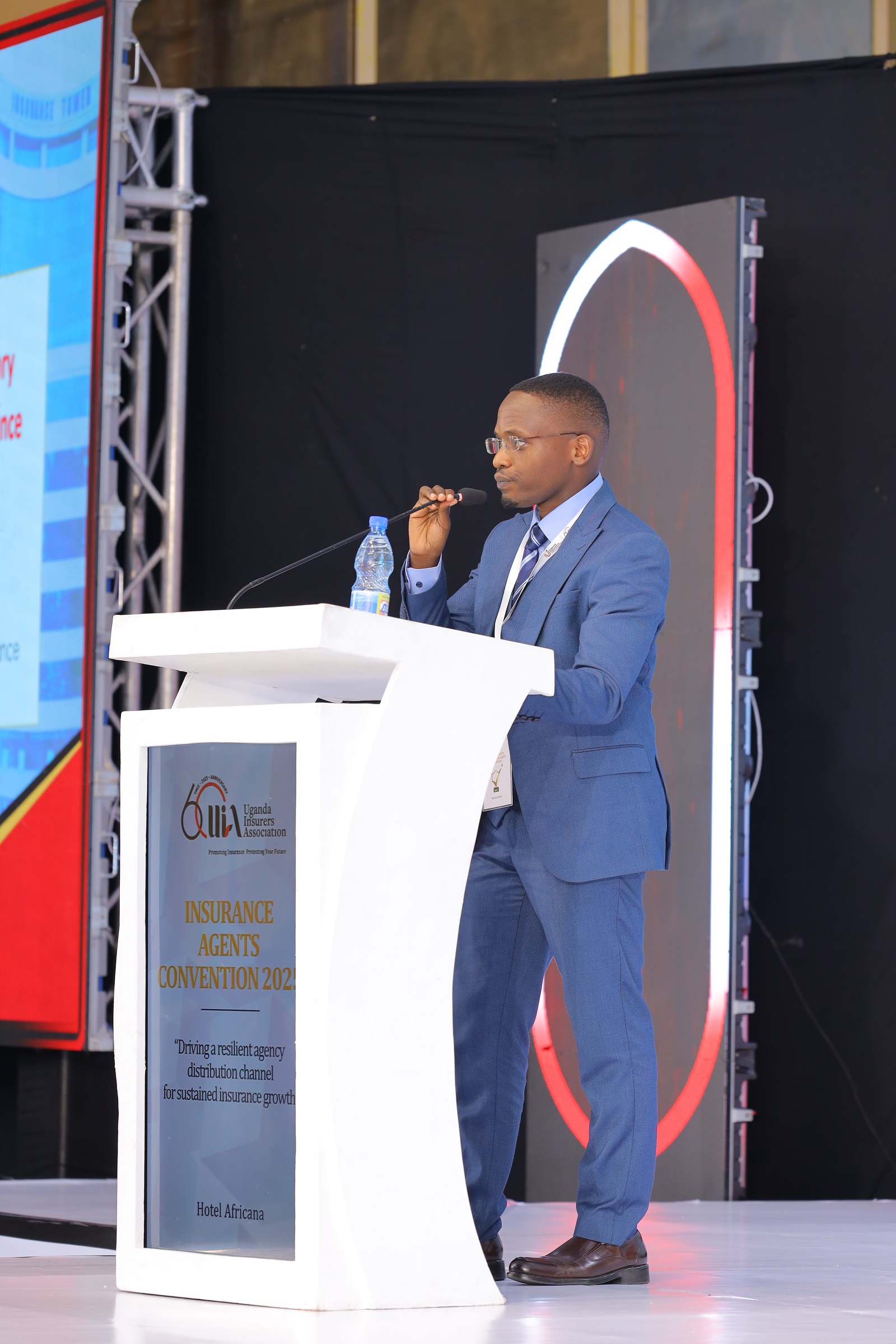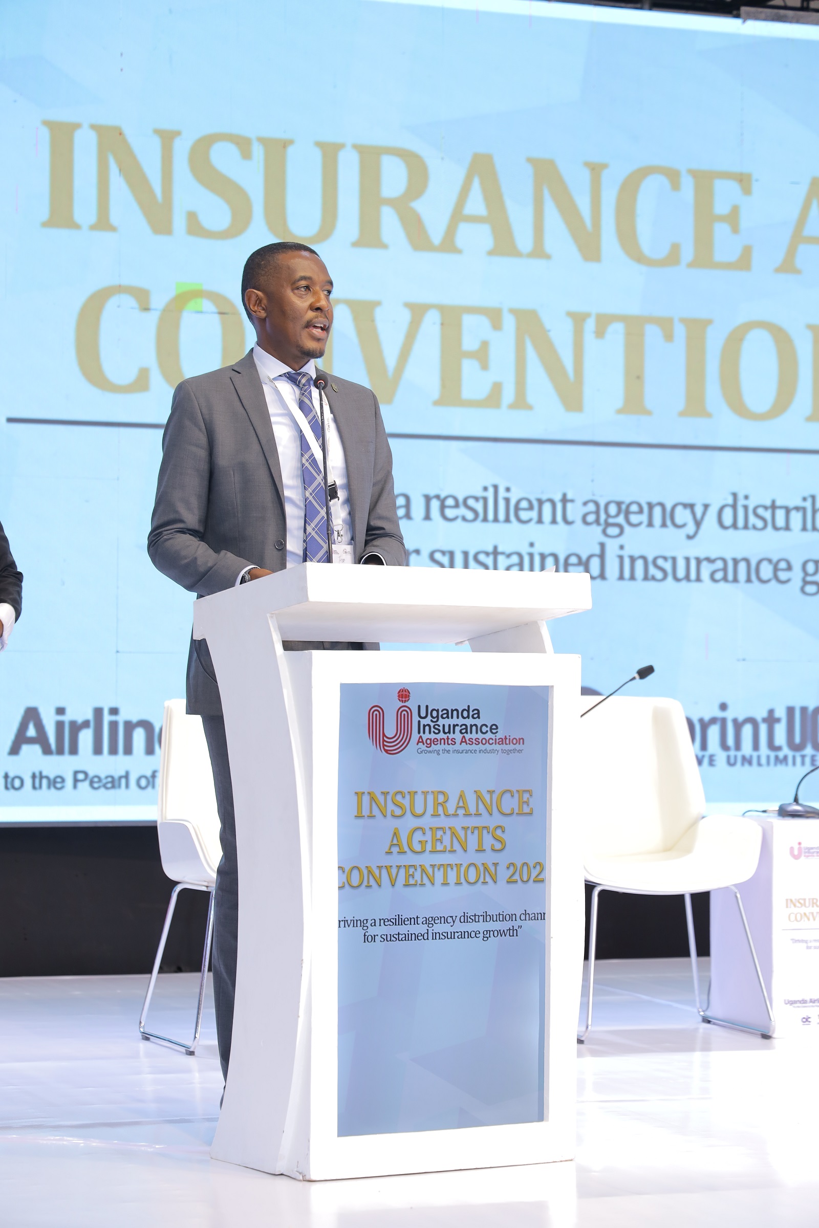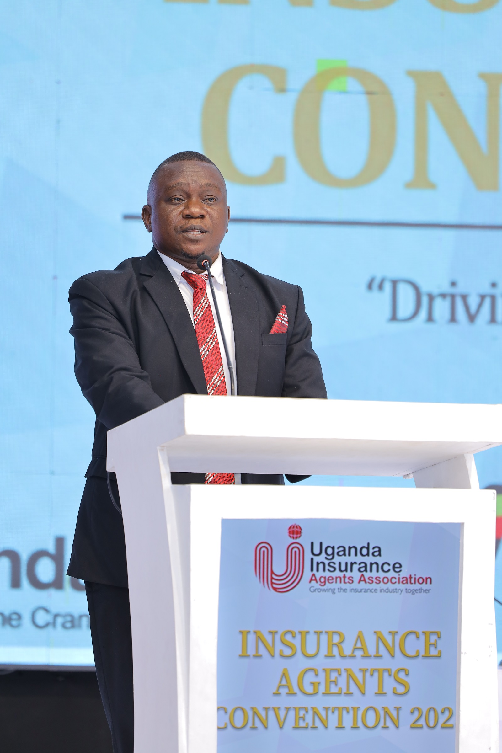 he Chairperson of the Uganda Insurance Agents Association (UIAA) and a member of the Pan-African Insurance Association, Moses Joshua Muyomba delivers his speech at the Convention