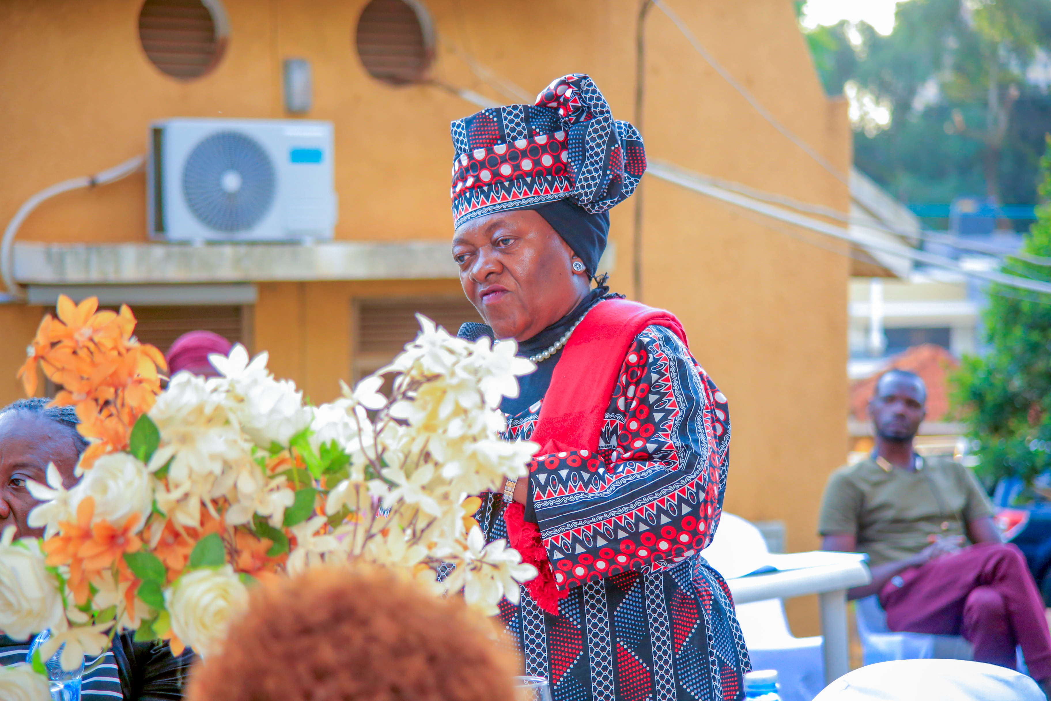 WIN's President, Hajjat Aphwa Kawaase Sebyala delivers her speech at the Meet & Greet