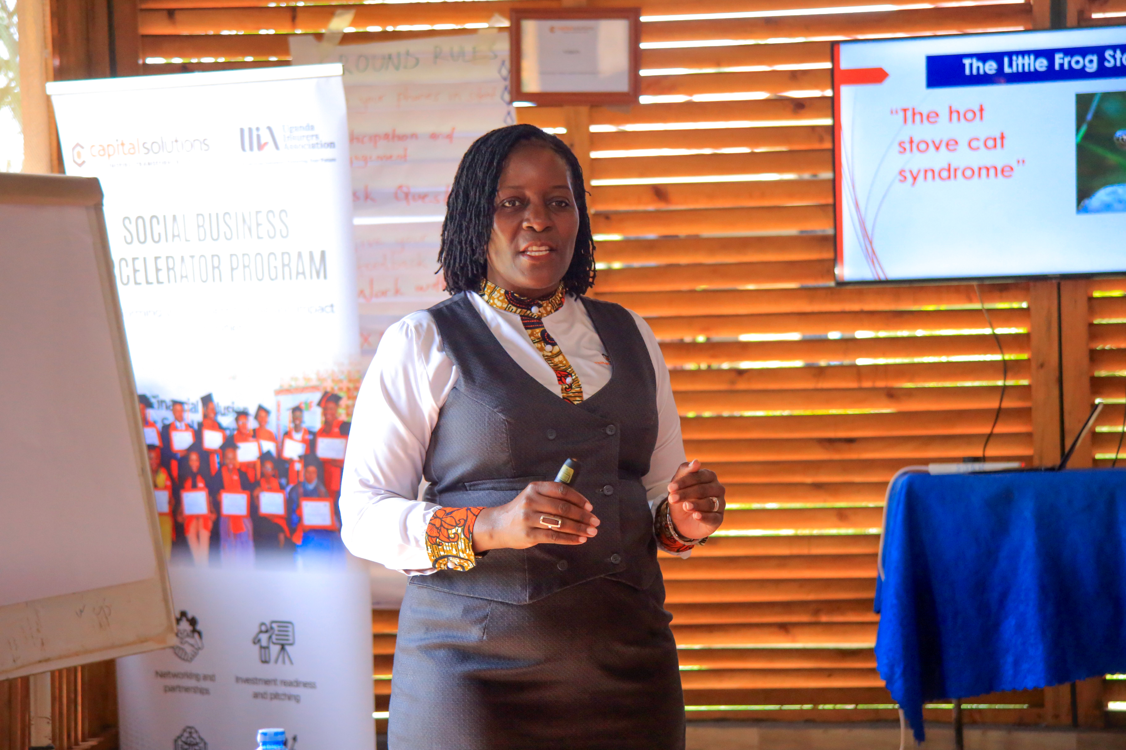 Kicking off the session, Angella Kemigisa, our Research Officer, spoke to trainees about the value of the partnership and the training. She highlighted that the partnership with Capital Solutions Limited is in line with Strategic Objective 4 of the Uganda Insurers Association (UIA), which is to increase UIA’s visibility and impact. She emphasised the training’s transformative potential and expressed pride in UIA’s collaboration with Capital Solutions to support social entrepreneurs committed to making positive social impacts. “This program is more than just a training, it is a strategic partnership aimed at strengthening enterprises that drive community-centered solutions.”