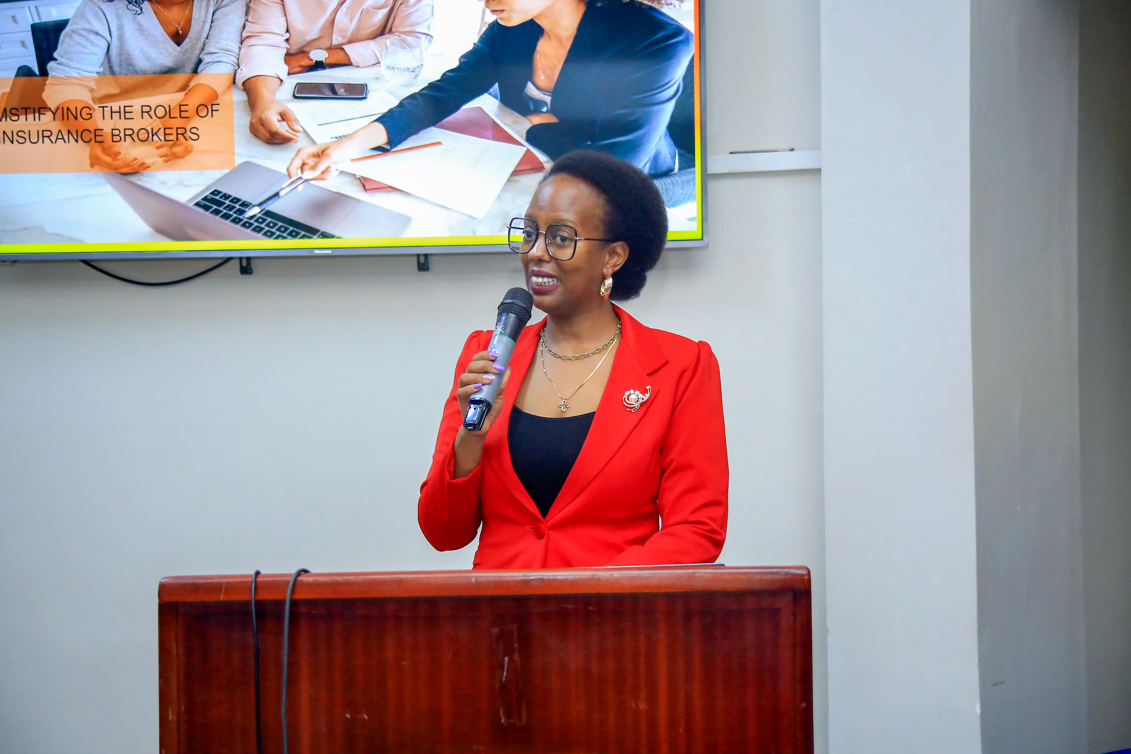 Vice Chairperson of the Insurance Brokers Association Uganda (IBAU) - Rita Kabayiza Mutesi speaking at the workshop