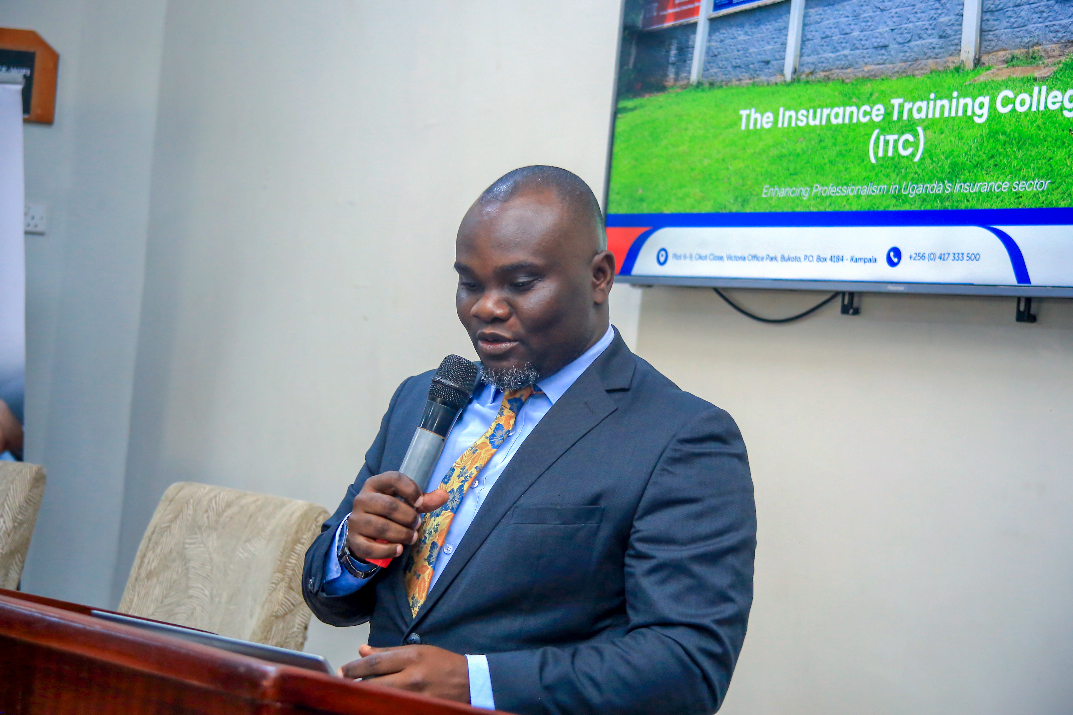 Principal of the Insurance Training College - Saul Seremba, addressing the media professionals