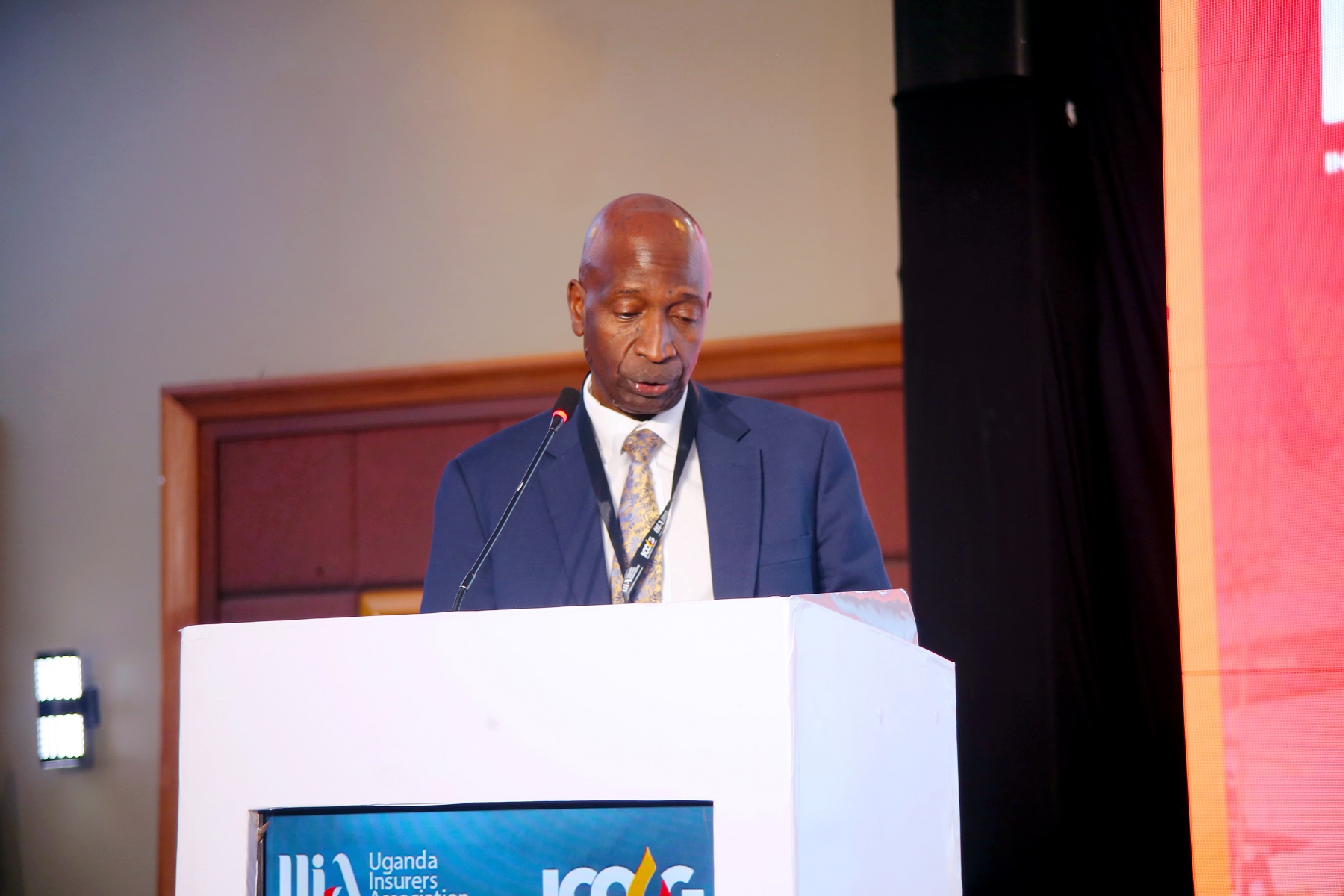 Paul Muwanga, UIA Vice Chairman and CEO of Excel Insurance delivering his speech at the Symposium