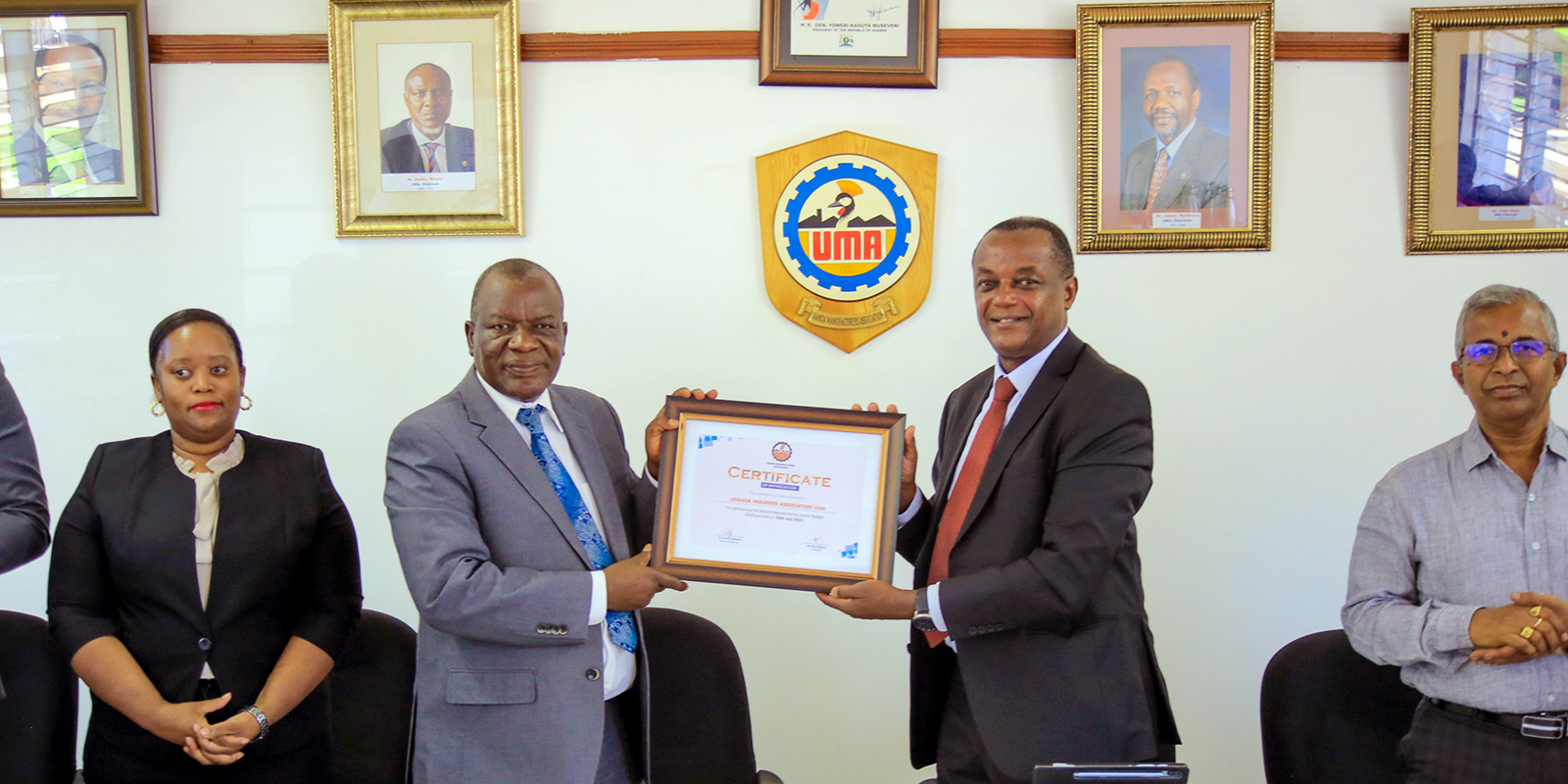 The UMA Chairman proposed the need to develop a common agenda & timetable of activities of the associations in form of a Memorandum of Understanding (MOU). He therefore handed over the proposed MOU to our Chairman – Mr. Latimer Mukasa that will inform the partnership between the associations. Mr. Deo Kayemba also handed over a certificate of appreciation for UIA’s continued support towards UMA projects like the Manufacturing Budget Dialogue that was held on 26th July, 2023 at the Kampala Serena Hotel.