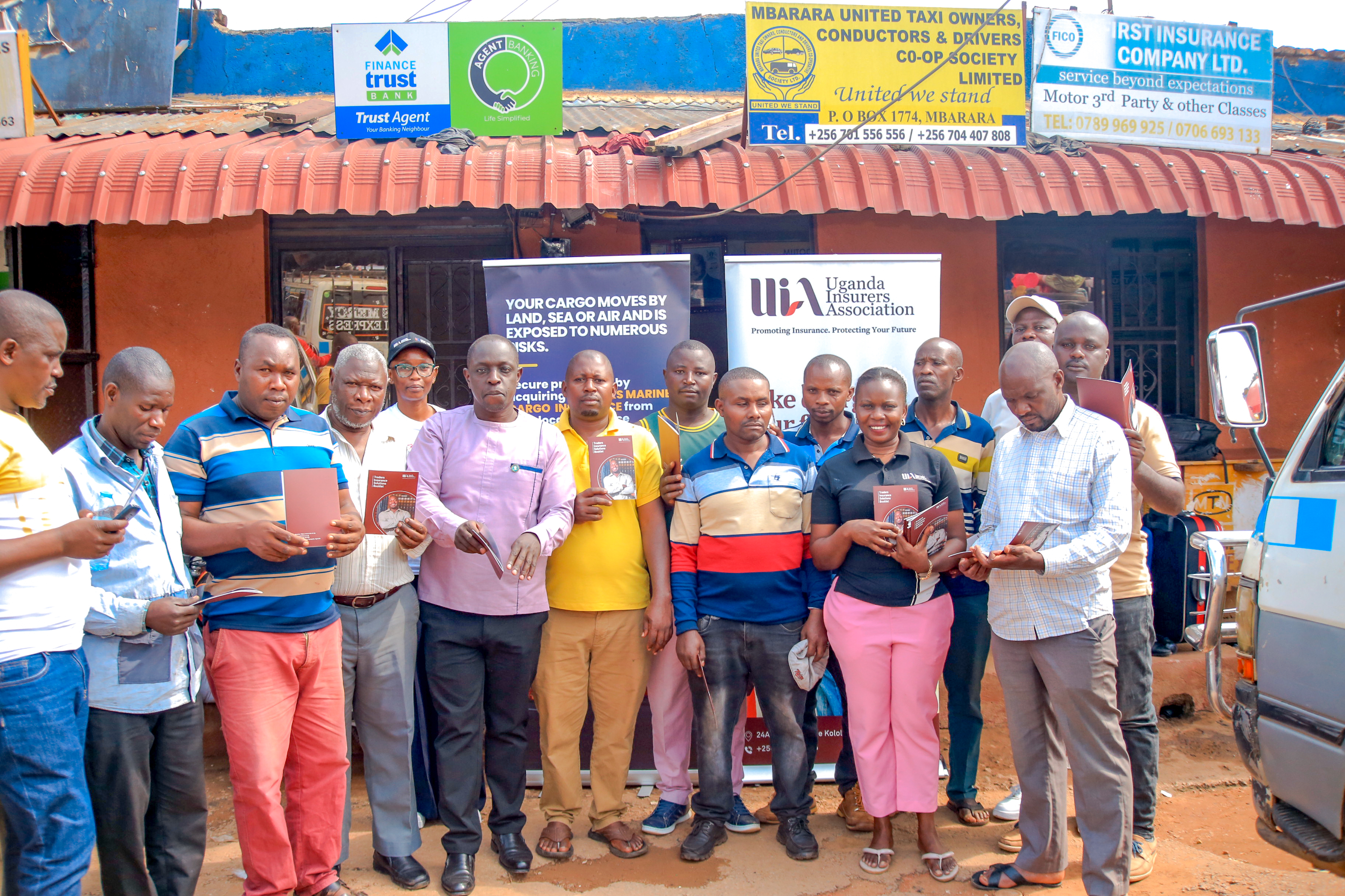 The exercise began with a stop at the Mbarara City Traders Association (MBACITA) offices, where our team led by our Research Officer, Angella Kemigisa and Projects Administrator, Angella Eryenyu, officially handed over the Traders Insurance Solutions Booklets to the MBACITA Chairman, Mr. Ssezi Mwijuka. This booklet is a product of comprehensive research that was conducted in 2023 among members of MBACITA, Mbale City Traders Association (MACITA), and Kampala City Traders Association (KACITA), to provide a detailed overview of common risks their businesses were exposed to, the insurance solutions available to mitigate the risks and resourceful contacts that can be reached out to for support.