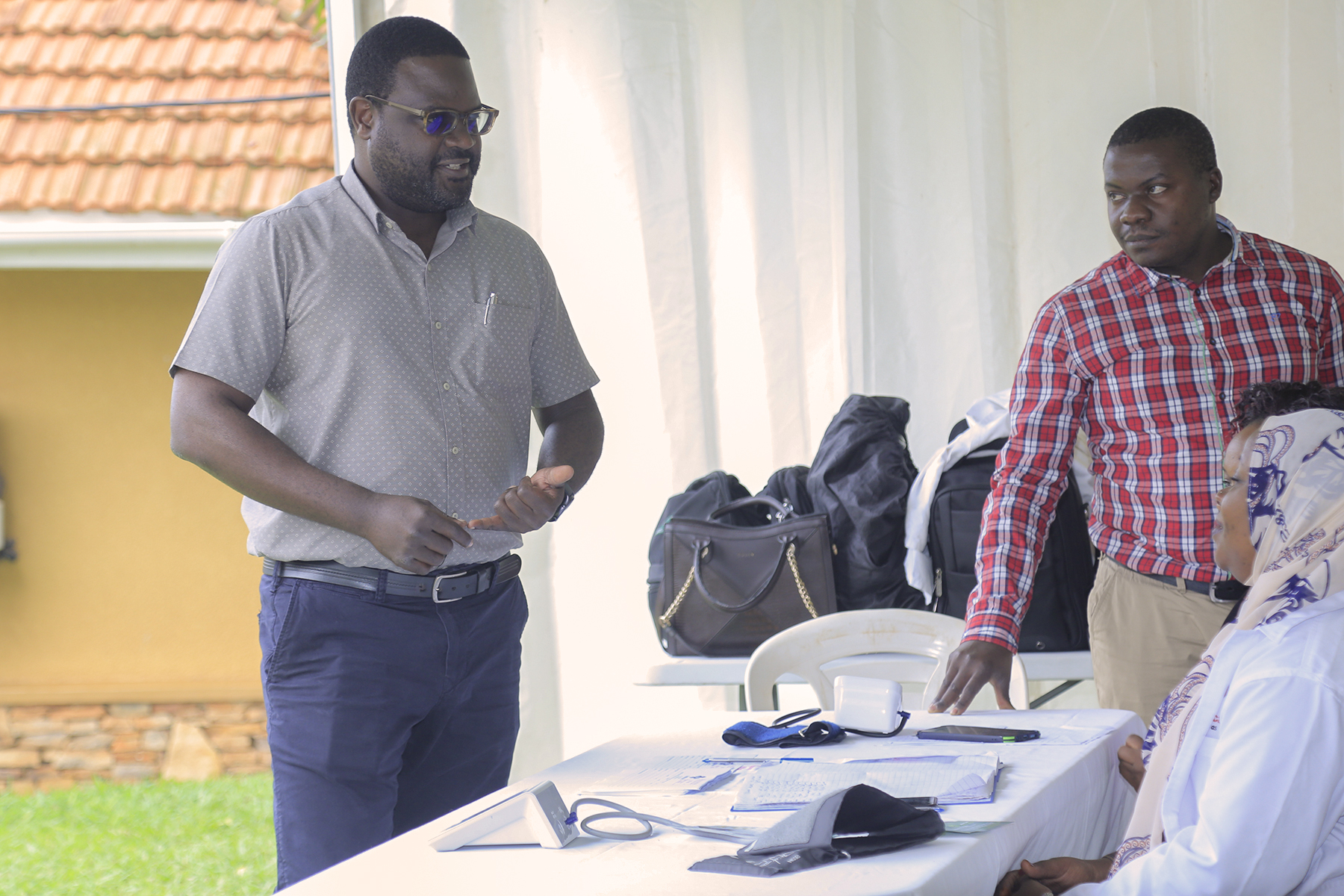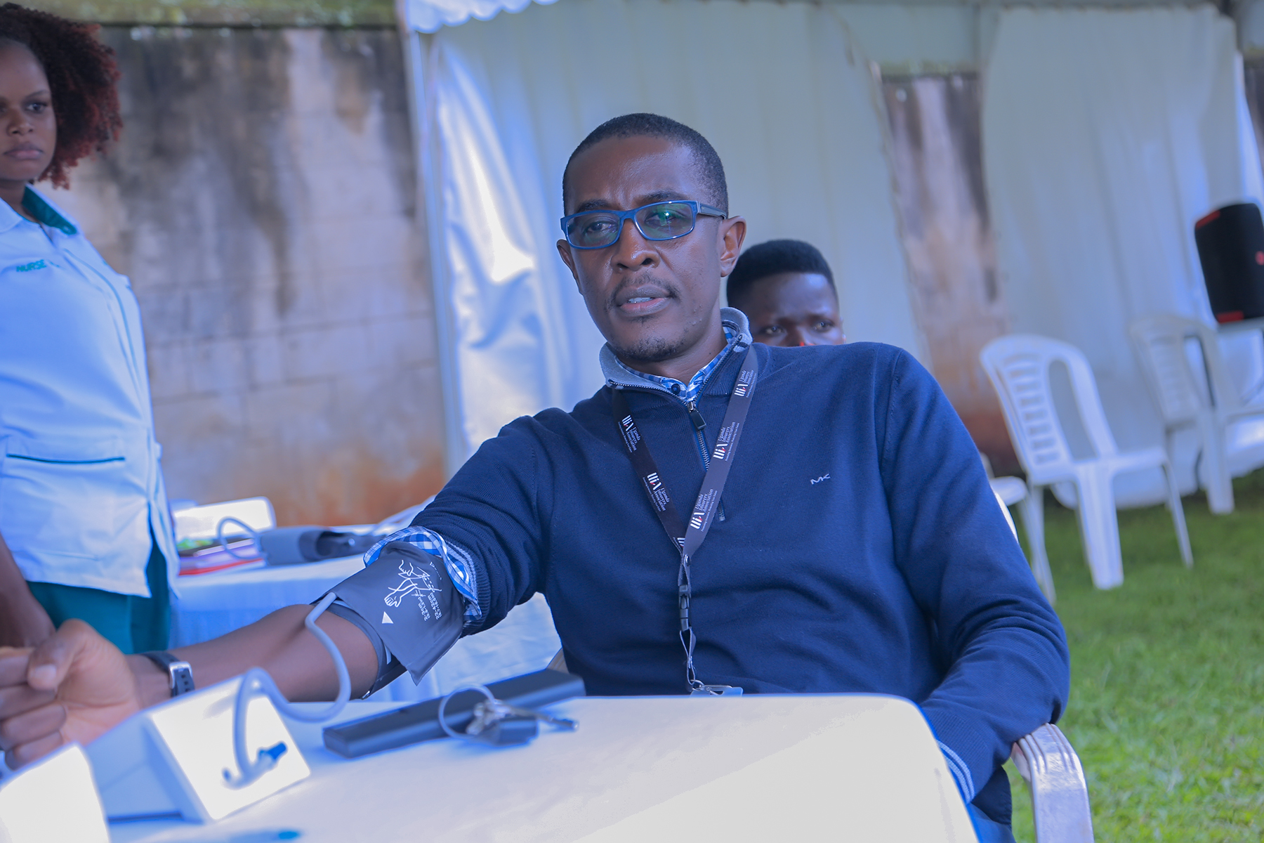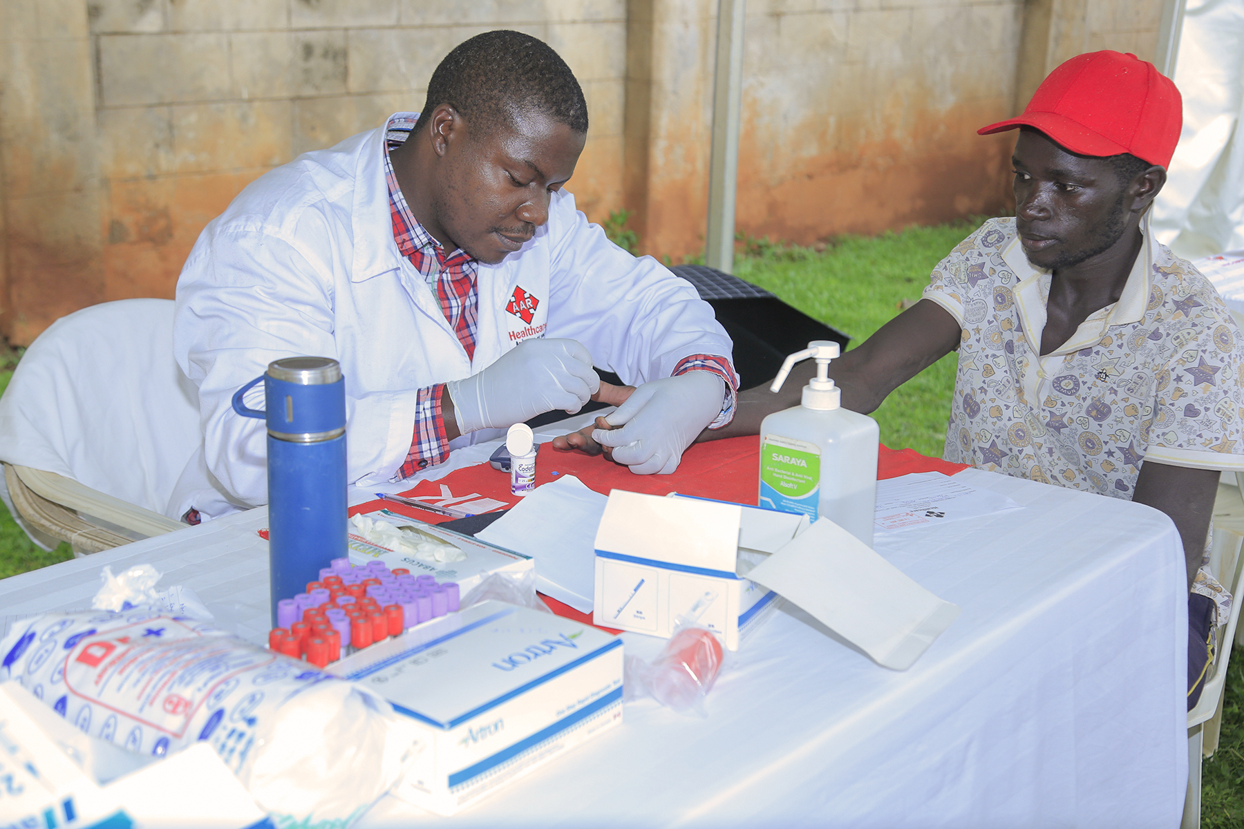 A Health Practitioner from AAR Health Insurance Uganda carrying out tests on one of the attendees.