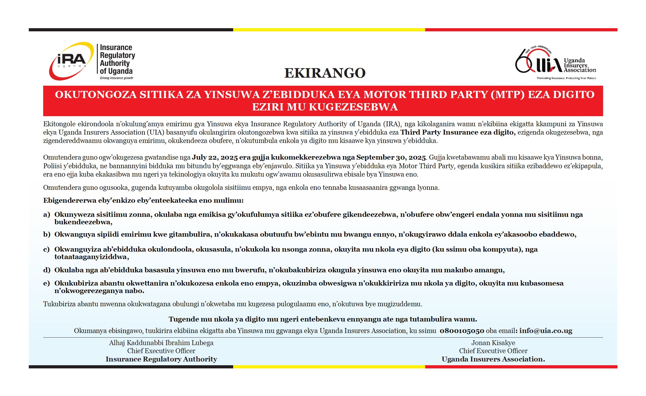 Okutongoza sitiika za Yinsuwa z'ebidduka eya Motor Third Party (MTP) eza digito eziri mu kugezesebwa - Bukedde