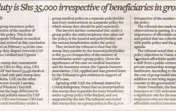Stump duty is Shs. 35,000 irrespective of beneficianries in group policy